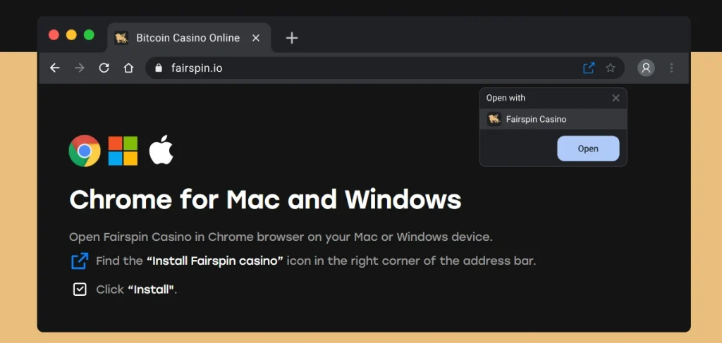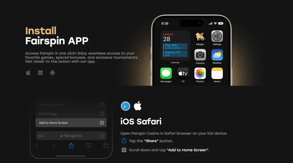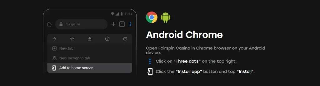 - Visita el Sitio Web: Desde tu celular, andá al sitio web de Fairspin. El sistema te va a sugerir automáticamente que descargues la aplicación.